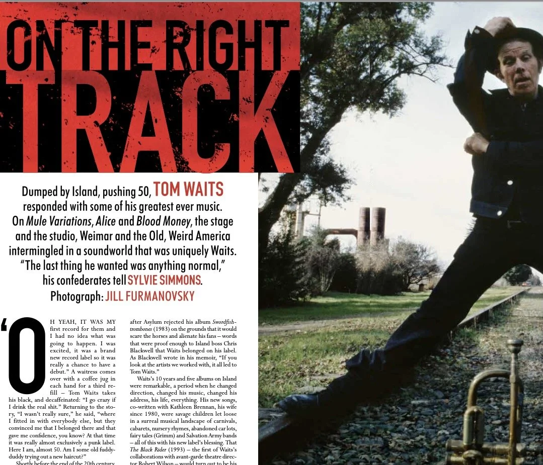 This is part of Page one of the 7-page feature I wrote on Tom Waits for the issue of MOJO magazine that's currently on the news stands. I love writing about Waits - fascinating man, wonderful music.